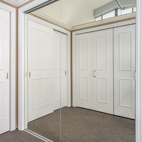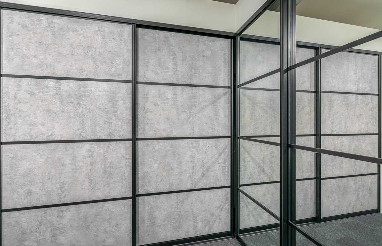Our most customisable door option. Each door can be sectioned up to five times with separate panels of melamine, mirror or glass.