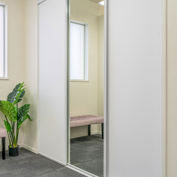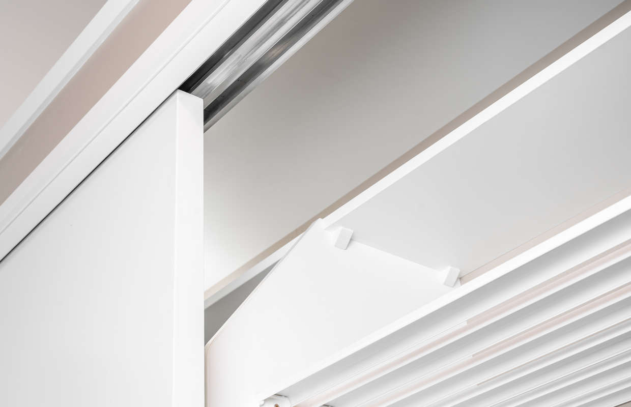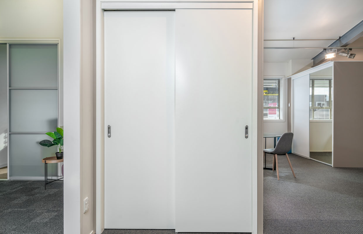 Our flush panel doors are available in sliding or bifold options on an incredibly smooth roller-bearing, top-hung track system.